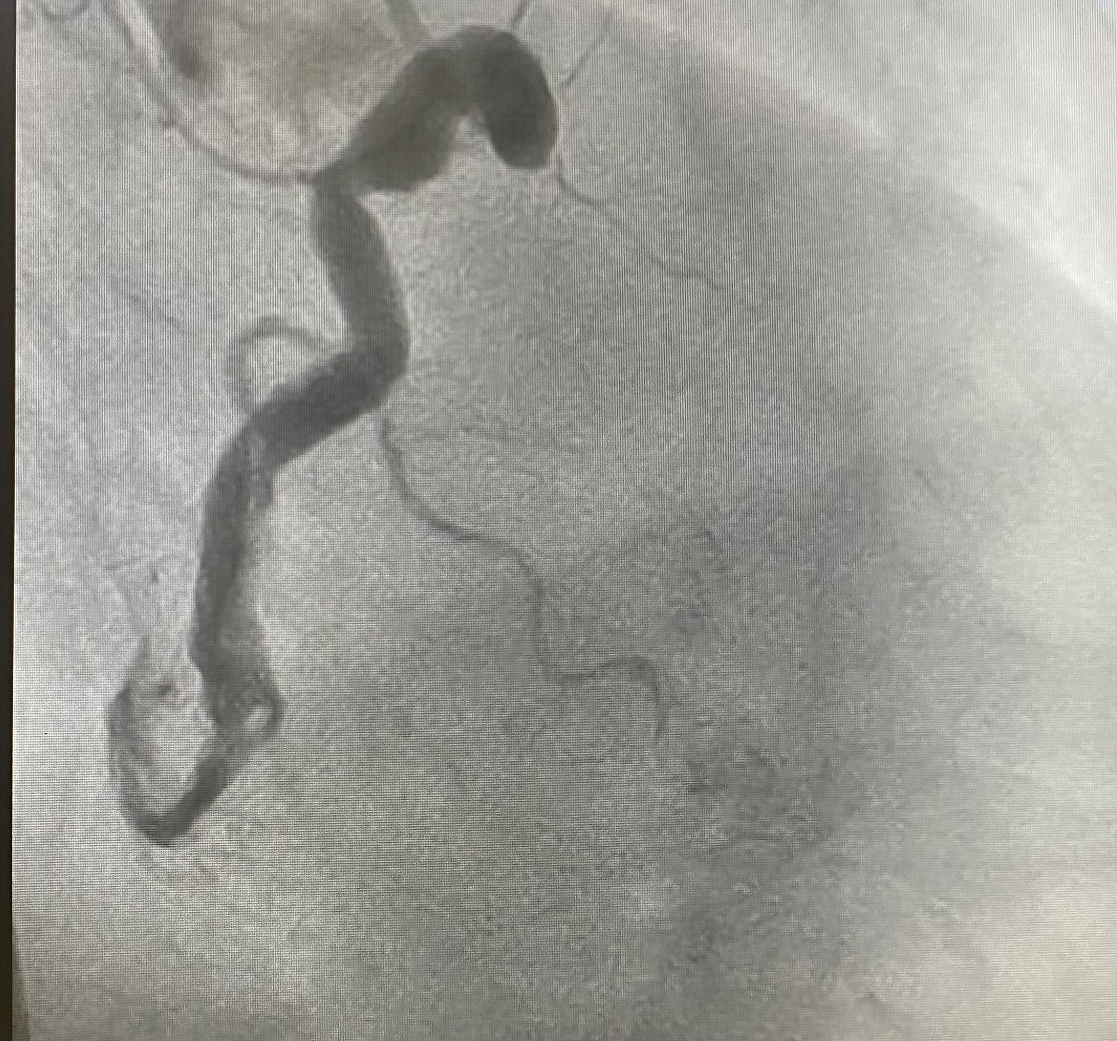 Introdução: O aneurisma de artéria coronária é definido como uma dilatação focal do diâmetro arterial superior a uma vez e meia o diâmetro do vaso normal. O estudo histológico demonstra hialinização difusa, depósitos de lipídios, ruptura da íntima, calcificação da média, fibrose focal e hemorragia intramural. Essas áreas, mesmo se não associadas à estenose, estão sujeitas a espasmos, tromboses, embolias e dissecções espontâneas, que são potenciais causas de síndromes coronarianas agudas. A prevalência na literatura em pacientes submetidos à coronariografia varia entre 0,15% e 4,9%. O que se sabe sobre sua patogenia, além da suscetibilidade genética e da associação com doença aterosclerótica, é que também são correlacionadas à outras doenças como Kawasaki, Marfan,pós-infecciosa e iatrogênica após manipulação intracoronária.Relato de caso:M.R.F.S., mulher, 63 anos, HAS e tabagista, quadro de precordialgia típica com 5 horas de duração, sudorese fria e hipotensão, trombolizada na origem sem critérios de reperfusão, onde apresentou PCR, revertida após 4 ciclos. Admitida em nosso serviço comdrogas vasoativas. ECG com supra ST em parece inferior (imagem 1). ECOTT com Acinesia inferosseptal,DSVE moderado (FEVE 31% - Simpson). Hemodinâmica: TCE bifurcado, observa-se aneurisma estendendo-se para terço proximal de ADA e ramo diagonal, sem lesões obstrutivas. Ramo Dg exibe grande aneurisma em terço proximal , isento de estenoses. ACD (dominante)exibe aneurisma difuso, do terço proximal ao médio com imagem negativa em terço médio sugestiva de trombo luminal e imagem focal, em segmento médio distal, sugestiva de lesão instável (napking ring- imagem 2). O fluxo do meio de contraste através de ACD e seus ramos tem aspecto normal.Paciente evolui a óbito após dois dias. Discussão/Conclusão: Esse caso ilustra uma manifestação típica de aneurisma de artéria coronária com trombose luminal. A estratégia terapêutica adotada foi a anticoagulação. O tratamento dos aneurismas coronários envolve terapia de antiagregação plaquetária e anticoagulação. Os aneurismas muito grandes e/ou multiarteriais têm sido tratados com enxertos vasculares coronários.Existem poucas descrições cirúrgicas para o tratamento de aneurismas das artérias coronárias, permanecendo controvérsias sobre a melhor opção terapêutica, demonstrando a necessidade de se realizar mais estudos sobre o tema.